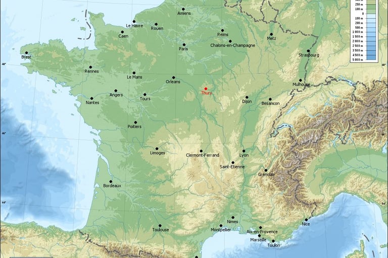 Thury est une commune du département de l'Yonne, qui se trouve à 150 kms au Sud-Est de Paris. Sur la trajectoire Paris-Lyon de l'autoroute A6 et à 30 kms au Sud d'Auxerre, la préfecture du département.